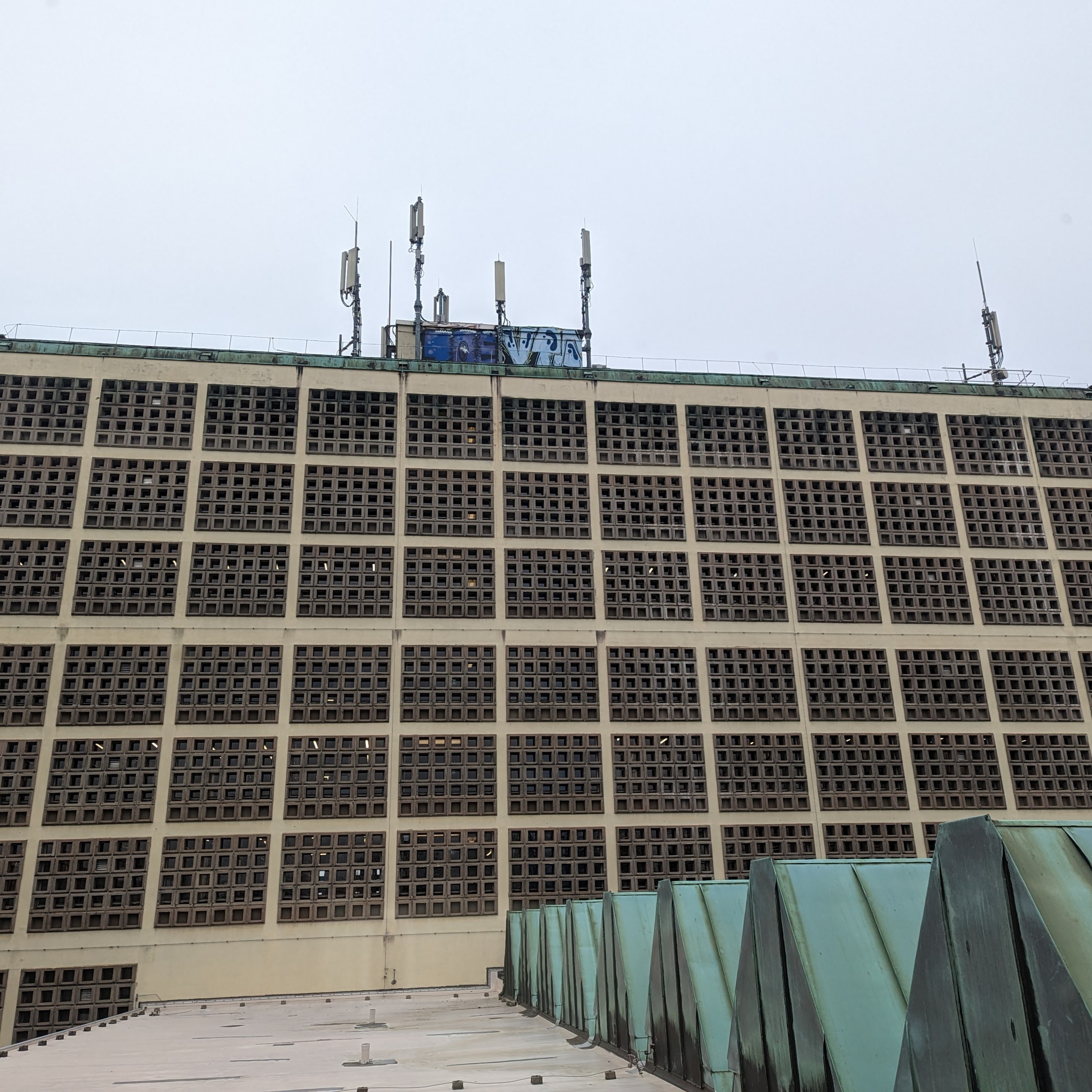 16.02.2023. Es ist grau. Es bleibt grau. Immerhin bißchen Kunst da oben. 1959 wird Fidel Castro Regierungschef von Kuba und bleibt das 49 Jahre lang.